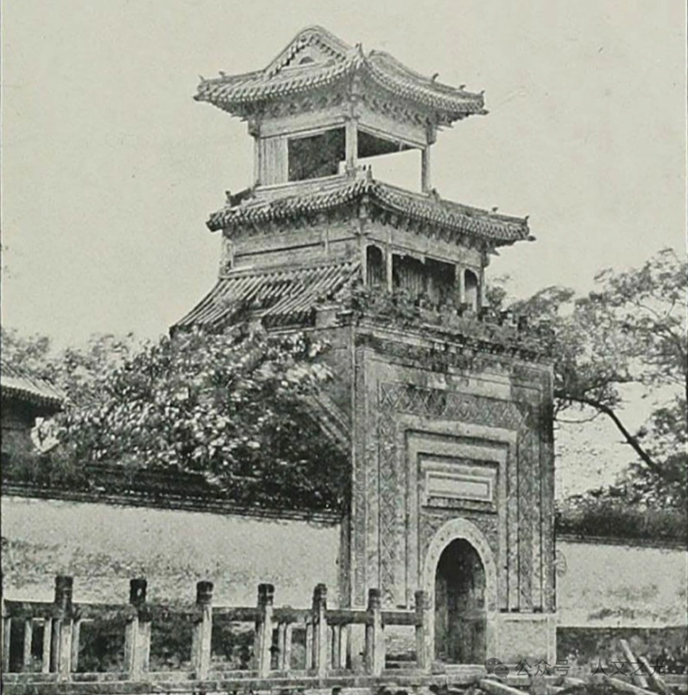 Originally, a long wall stood south of the Baoyue Lou. In the early Republic of China, the section closest to the tower was demolished, revealing the entire structure, which was renamed Xinhua Gate (New China Gate). When Yuan Shikai was in power, he established the Presidential Palace here, and this gate became its main entrance. Directly facing this gate was the minaret of the Huiziying Mosque. After Yuan’s brief “Hongxian” imperial reign, he often worked late in his “Jurentang” office in the residence. Late at night, he would hear loud recitations from the south. Listening carefully, this non-singing, mournful, and solemn sound made his hair stand on end, sending chills down his spine. He later discovered it was the Imam of the Huiziying Mosque performing the dawn prayer (Fajr) call to prayer (Adhan). That Yuan, with his ghostly and furtive style of governance, was frightened by this, is no wonder his hold on power was as brief as a flower’s bloom.